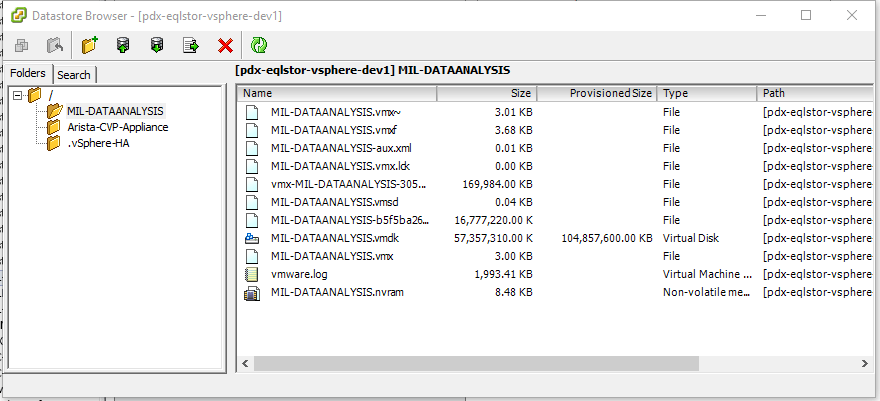 Browse to the datastore that the VM is located in, and copy all files in the folder to the bulk storage destination. – Delete the VMWare.log files from the destination.
